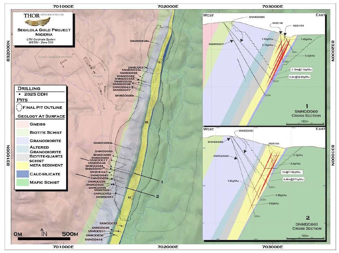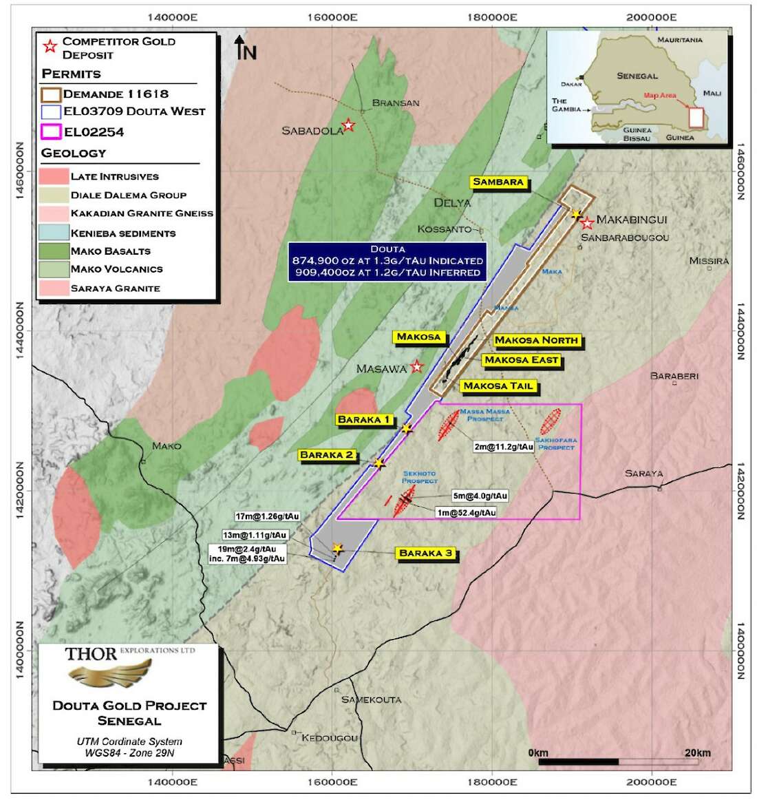 Thor Explorations Ltd. is a Canadian mineral exploration company engaged in the acquisition, exploration and development of mineral properties located in Nigeria, Senegal and Côte d’Ivoire. Thor holds a 100% interest in the Segilola Gold Project located in Osun State of Nigeria. Mining and production commenced at Segilola in 2021. Thor holds a 100% interest in the Douta Gold Project located in south-eastern Senegal. Thor trades on the TSX Venture Exchange under the symbol “THX”.