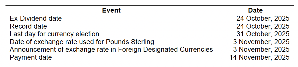 - Depository Interest (“DI”) holders registered in London will be paid in British Pounds, with an option to elect for United States Dollar payment