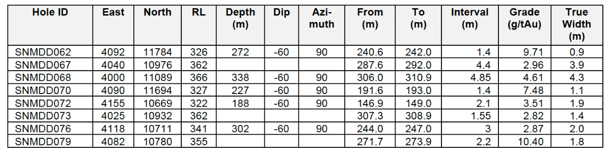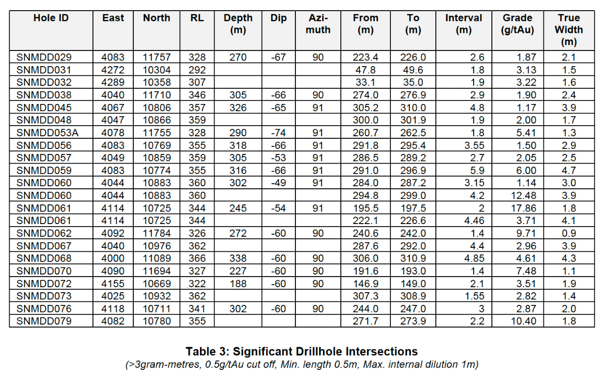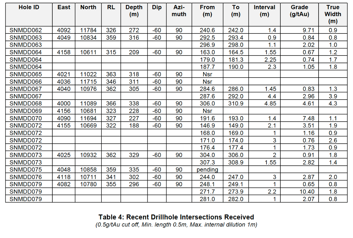 - Significant drill results exceeding 3 gram-metres (calculated as average grade multiplied by true width) are highlighted in the Longitudinal section (Figure 1) and detailed in Table 3, underscoring the strong mineralisation identified during this campaign. A comprehensive list of all recent results can be found in Table 4.